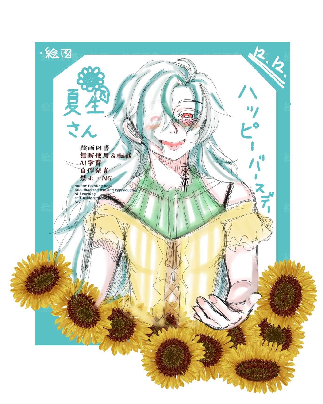 夏生さん、お誕生日おめでとうございます🌻落書きですがイラスト失礼します。夏生さんの自創作キャラが多くどの子にするか迷ったのですが…やはりまだ描いたことが無かったので代理さんにさせて頂きました✨️機会があれば他の方や本描きか出来れば幸いです😌