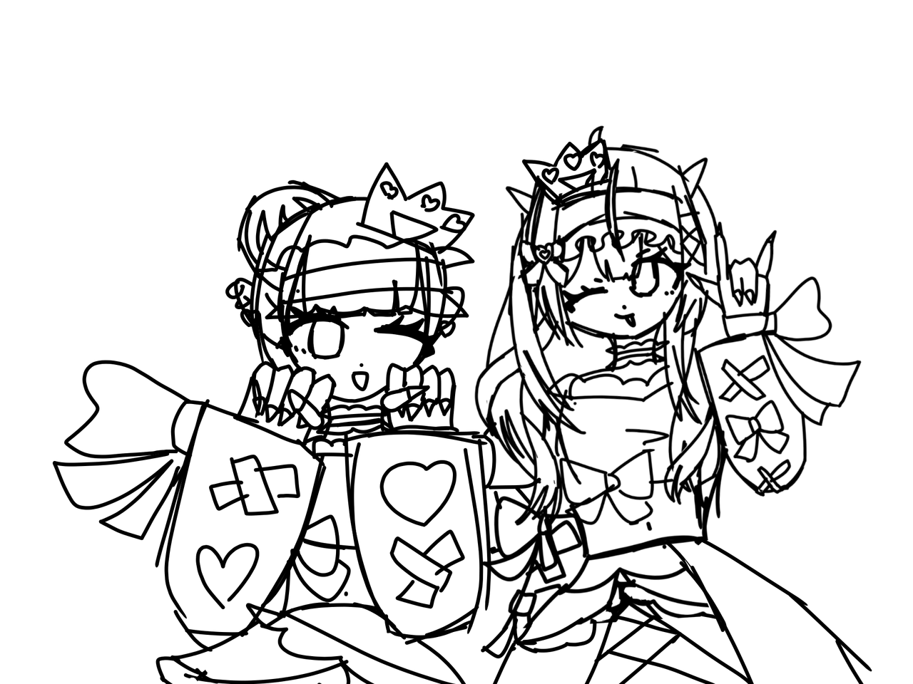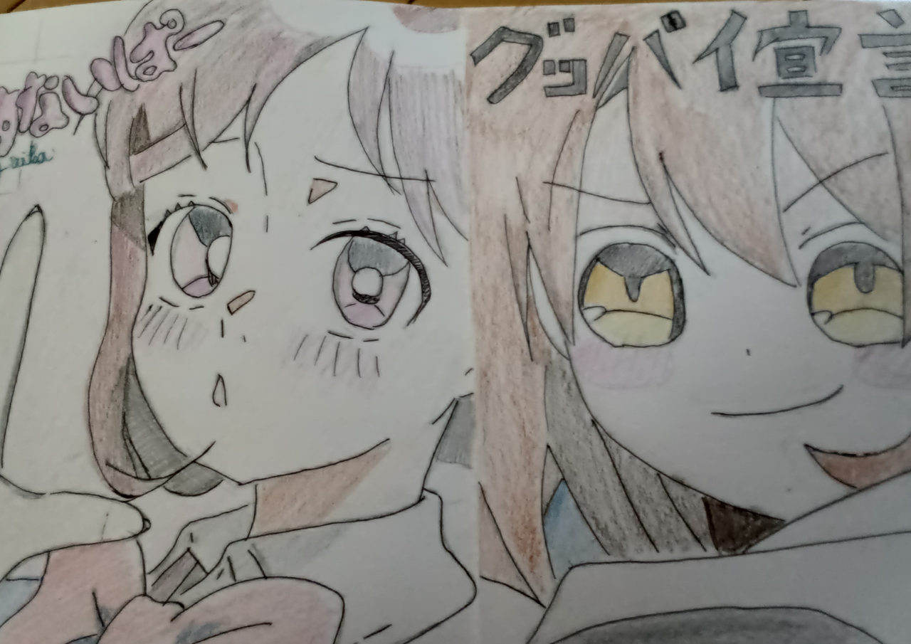 みたらし団子ちゃんとめうちゃんを描いてるラフ!