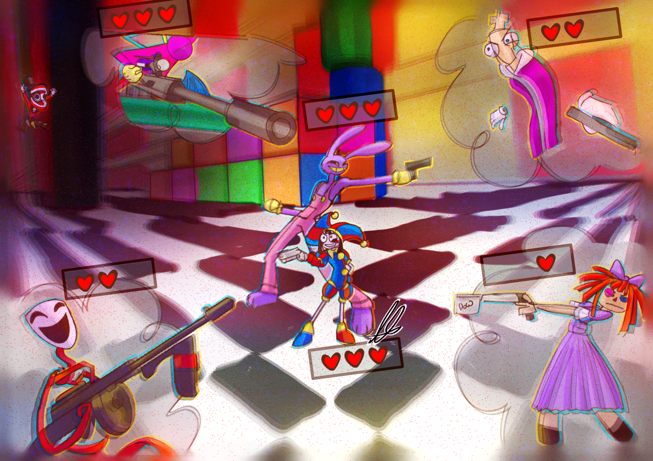 Pomni And Jax in a GunBattle: By Little_Spacy