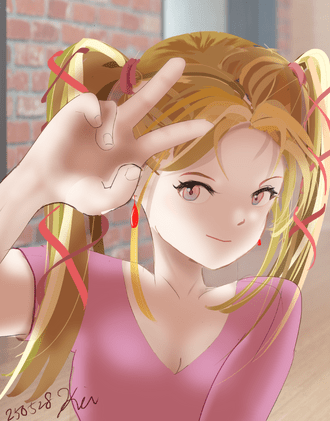 あ、髪の赤いリボン描くの忘れた。まぁ、いいか。
