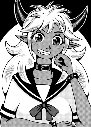 An illustration of a rather gloomy maid. She pretty much has the same facial expression as me when I need to clean my house. ^^;